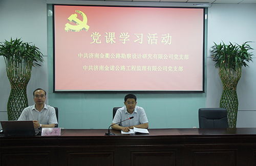 為進(jìn)一步學(xué)習(xí)貫徹落實(shí)黨的十九大精神,深入領(lǐng)會山東省新舊動能轉(zhuǎn)換重大工程會議要求,激發(fā)廣大黨員干部新時代新?lián)?dāng)新作為,2018年5月25日下午,濟(jì)南金諾公路工程監(jiān)理有限公司黨支部、濟(jì)南金衢公路勘察設(shè)計研究有限公司黨支部組織全體黨員、中層及以上干部、積極分子五十余人在金衢公司第一會議室進(jìn)行黨課學(xué)習(xí)。濟(jì)南金諾公司黨支部書記、董事長兼總經(jīng)理馮子強(qiáng),濟(jì)南金衢公司黨支部書記、董事長兼總經(jīng)理張建等領(lǐng)導(dǎo)出席學(xué)習(xí)活動,會議由濟(jì)南金衢公司張建書記主持。
