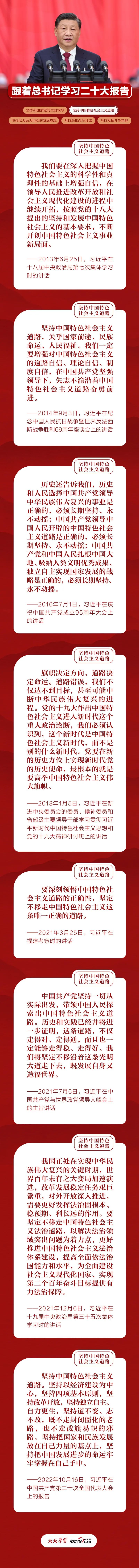 黨的十八大以來,在以習近平同志為核心的黨中央堅強領導下,我們以奮發(fā)有為的精神推動新時代中國特色社會主義不斷向前,推進改革開放和社會主義現(xiàn)代化建設不斷深入,書寫了經(jīng)濟快速發(fā)展和社會長期穩(wěn)定兩大新篇章。歷史已經(jīng)并將繼續(xù)證明,中國特色社會主義道路不僅走得對、走得通,而且走得穩(wěn)、走得好。讓我們一起學習總書記重要論述,不斷增強中國特色社會主義道路自信,堅定不移走這條道路、與時俱進拓展這條道路。